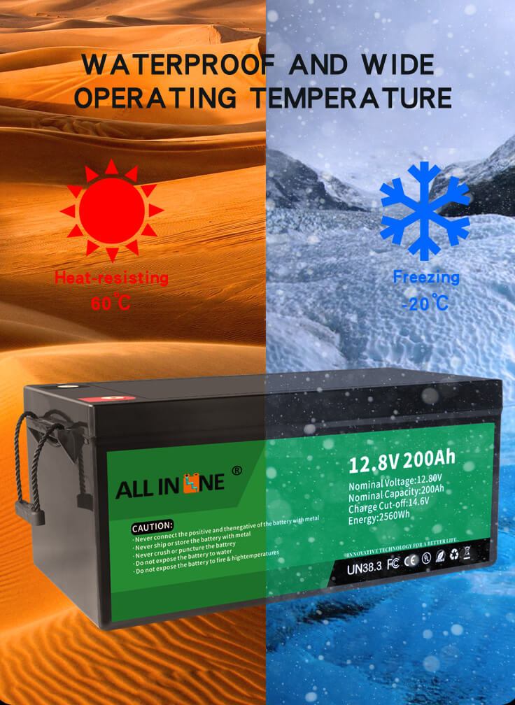 4. درجة حرارة عمل واسعة: بطارية LiFePO4 لديها نطاق درجة حرارة عمل واسع من -20 ° C ~ 60 ° C.