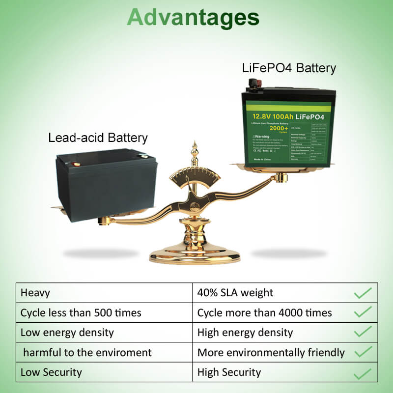 3. طاقة أعلى: توفر ضعف طاقة بطارية الرصاص الحمضية ، حتى معدل تفريغ عالي ، مع الحفاظ على قدرة طاقة عالية
