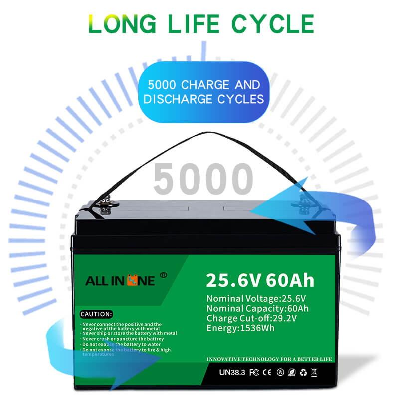 1. عمر طويل: بطارية LiFePO4 لها دورة حياة طويلة والتي تزيد عن 5000 مرة وعمرها يصل إلى 10 سنوات.