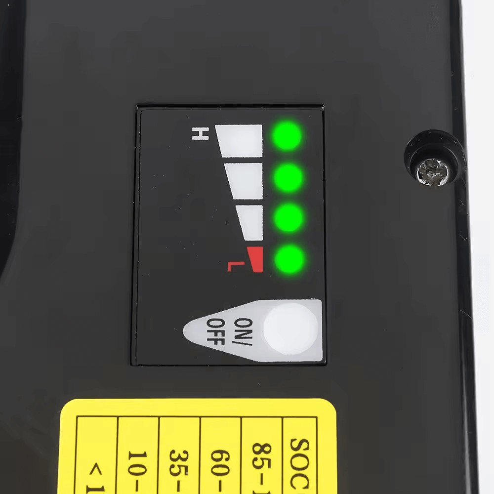 المدمج في BMS:حماية الشحن، حماية التفريغ، الحماية من التيار الزائد، درجة الحرارة، دعم التحكم في التطبيق، شاشة LCD للطاقة