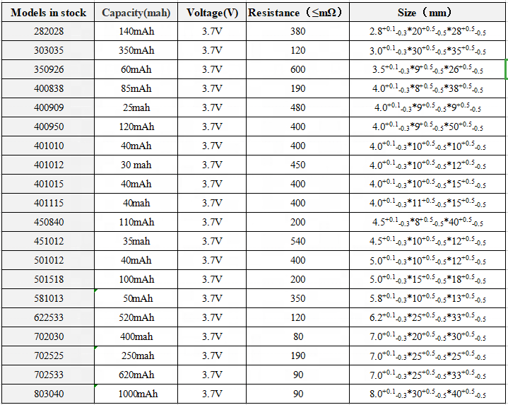 اسم المنتج | 581013 3.7 فولت 50 مللي أمبير بطارية ليثيوم بوليمر | ملاحظة | |