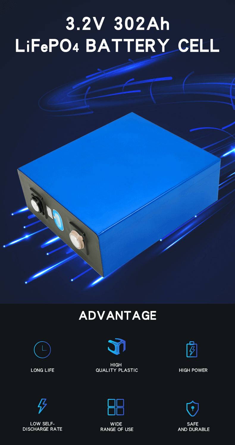 تتمتع خلية البطارية LiFePO4 المعتمدة من UL والتي تبلغ 3.2 فولت 302 أمبير في الساعة بالمزايا التالية: