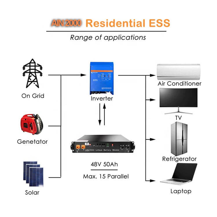 تم تطوير بطارية النظام الشمسي 1.AIN2000 48v بهيكل قياسي لخلية LFP عالية الأداء 3.2V 50Ah و EV لضمان السلامة وعمر الخدمة المتميز.