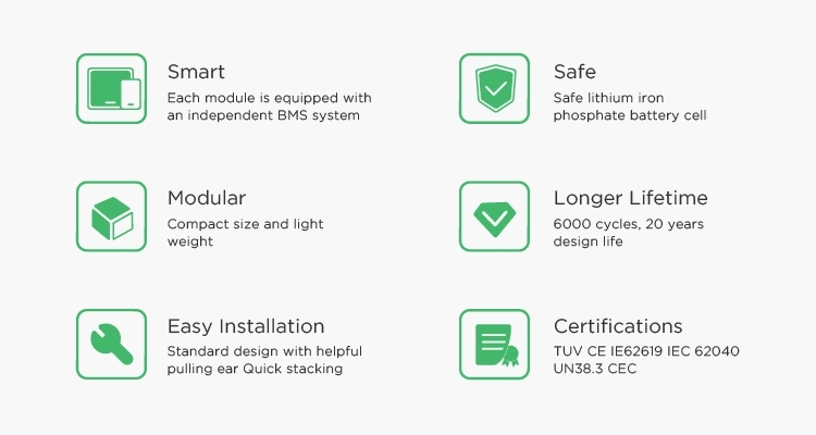 شهادة وسلامة ستادارد | معتمدة من TUV / CE / EN62619 / IEC62040 / UN38.3 / CEC | |